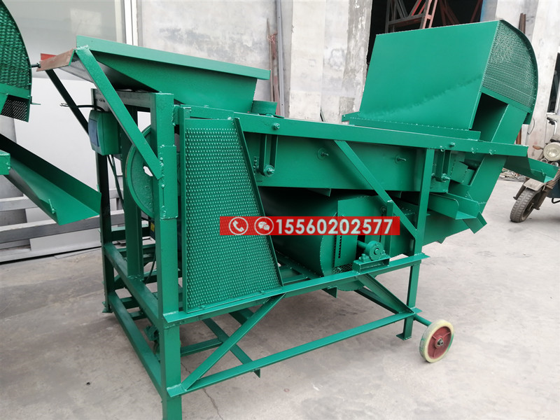 接通電源后,含有雜質的玉米經過第一層,第二層,第三層篩網,玉米中的碎玉米芯,皮屑,葉,毛須,癟糧,發霉的玉米,小石子,塵土等雜質從不同的排雜料口排出,干凈的玉米從篩選機出料口流出。