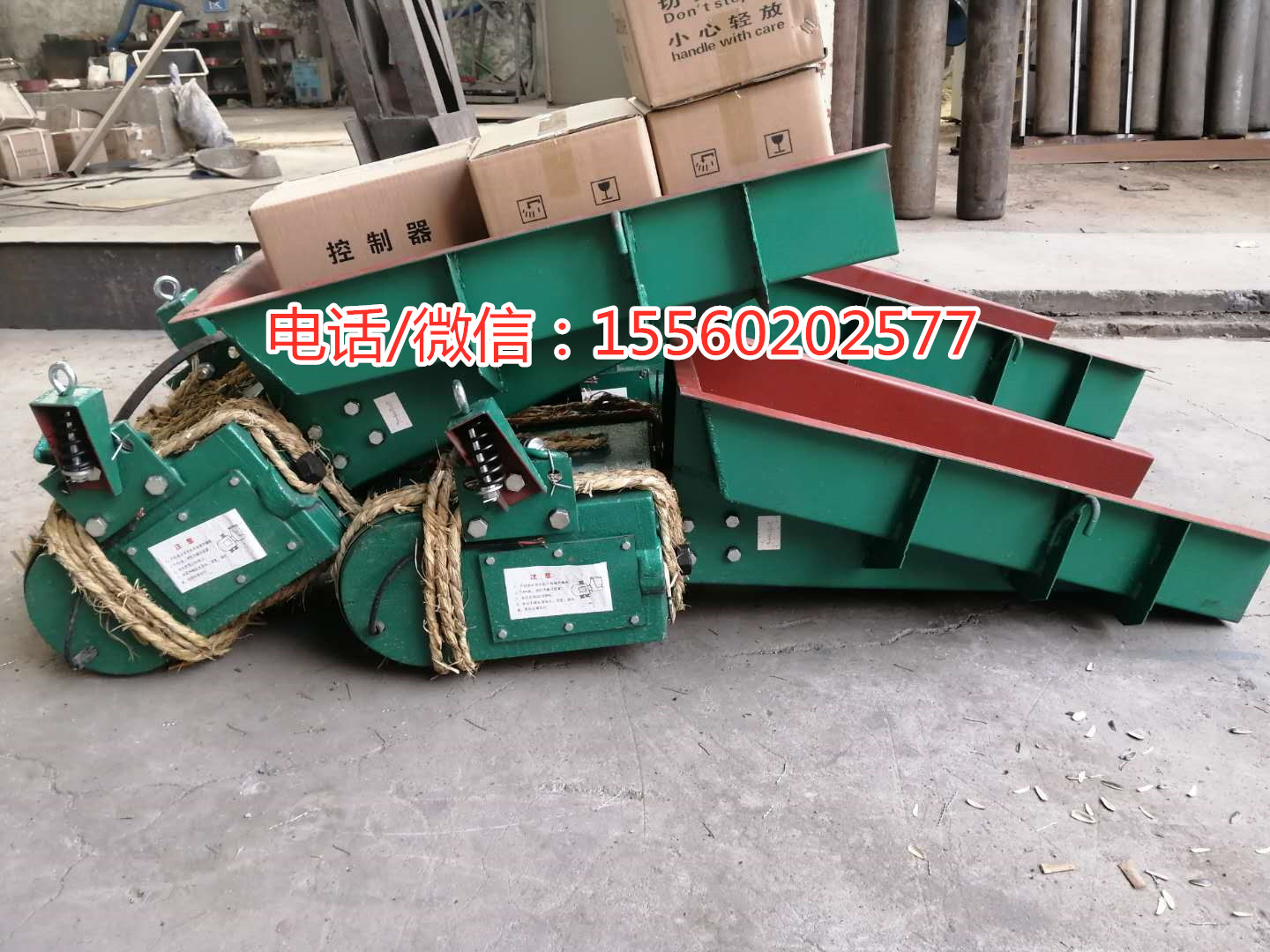 孟經(jīng)理您訂購的GZ4號電磁振動給料機已經(jīng)生產(chǎn)完畢。另外您要求的多配4個吊簧我們也給咱配好了。電磁振動給料機發(fā)的是韻達快運。電磁振動給料機料槽尺寸500*1100(寬*長),產(chǎn)量一小時50噸/小時。電磁振動給料機電壓220v。整機重量460Kg,請你收到貨以后確定一下。有問題了隨時聯(lián)系我。
