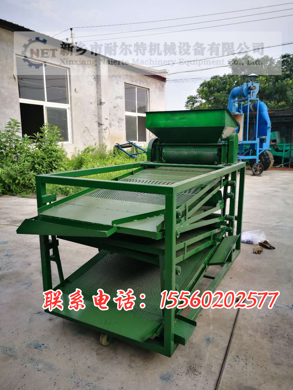 使用該機器可以把花椒中的籽、桿、葉、塵土等雜質分別清選出來,同時分出花椒顆粒等級,取代繁重的人工清選勞動。花椒清選機是專用于花椒脫粒、清選、分級、去雜的機械。 花椒篩選機及其他配套設備(提升機、皮帶機、絞龍、螺旋輸送機等)用途和特點:本機下方設有風機,可將從篩面流下的椒籽和花椒進一步風選分離,使篩凈率大大提高。