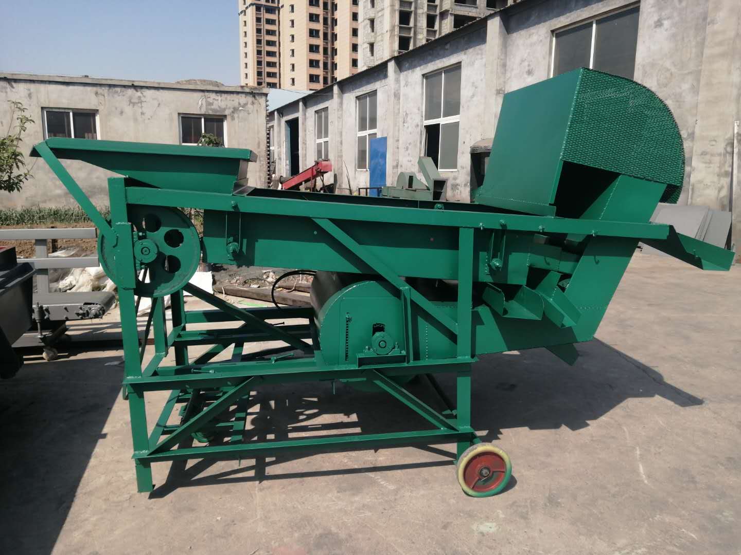 記得小時(shí)候家里的玉米豐收了以后,里邊會(huì)有雜質(zhì)。以前玉米里的雜質(zhì)都是揚(yáng)場。靠風(fēng)把里邊的雜質(zhì)吹出來。靠人工篩選不僅產(chǎn)量小。篩選的凈度也不高..給大家推薦一款電動(dòng)的篩選機(jī)。篩選機(jī)一小時(shí)產(chǎn)量可以高達(dá)8-14噸。篩選機(jī)一共是3層篩網(wǎng),4個(gè)出料口。篩選機(jī)比較結(jié)實(shí)耐用。篩選機(jī)的篩網(wǎng)都是沖孔板的。為了方便使用篩選機(jī)下邊加有移動(dòng)輪。